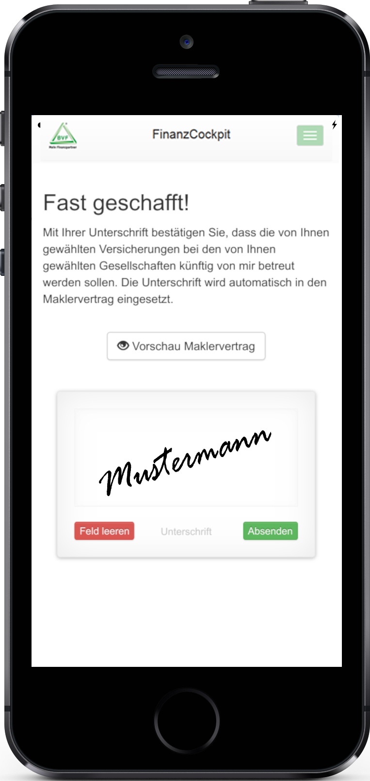 Sie sind und bleiben der Pilot: All das mache ich natürlich nur für Sie, wenn Sie es möchten. Mit Ihrer Unterschrift sind Sie immer abgesichert.